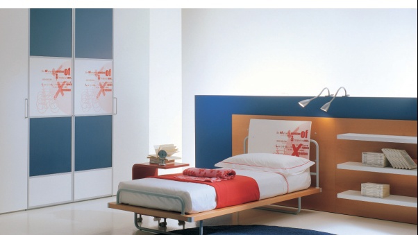 Headsets for children from the Italian manufacturer, Di Liddo & Perego. Set includes bed, wardrobe and shelving. The furniture is made of solid wood. The bed is made with metal legs. The Cabinet is made with metal handles. Colors - white, blue.