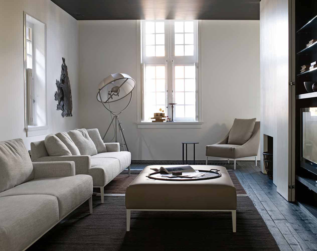 Pouf with metal frame upholstered in leather or fabric Jean, B&B Italia