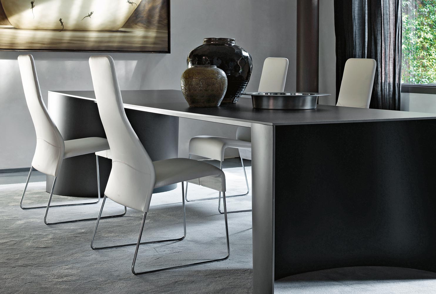 base: chrome-plated steel upholstery: leather upholstery: textiles |
