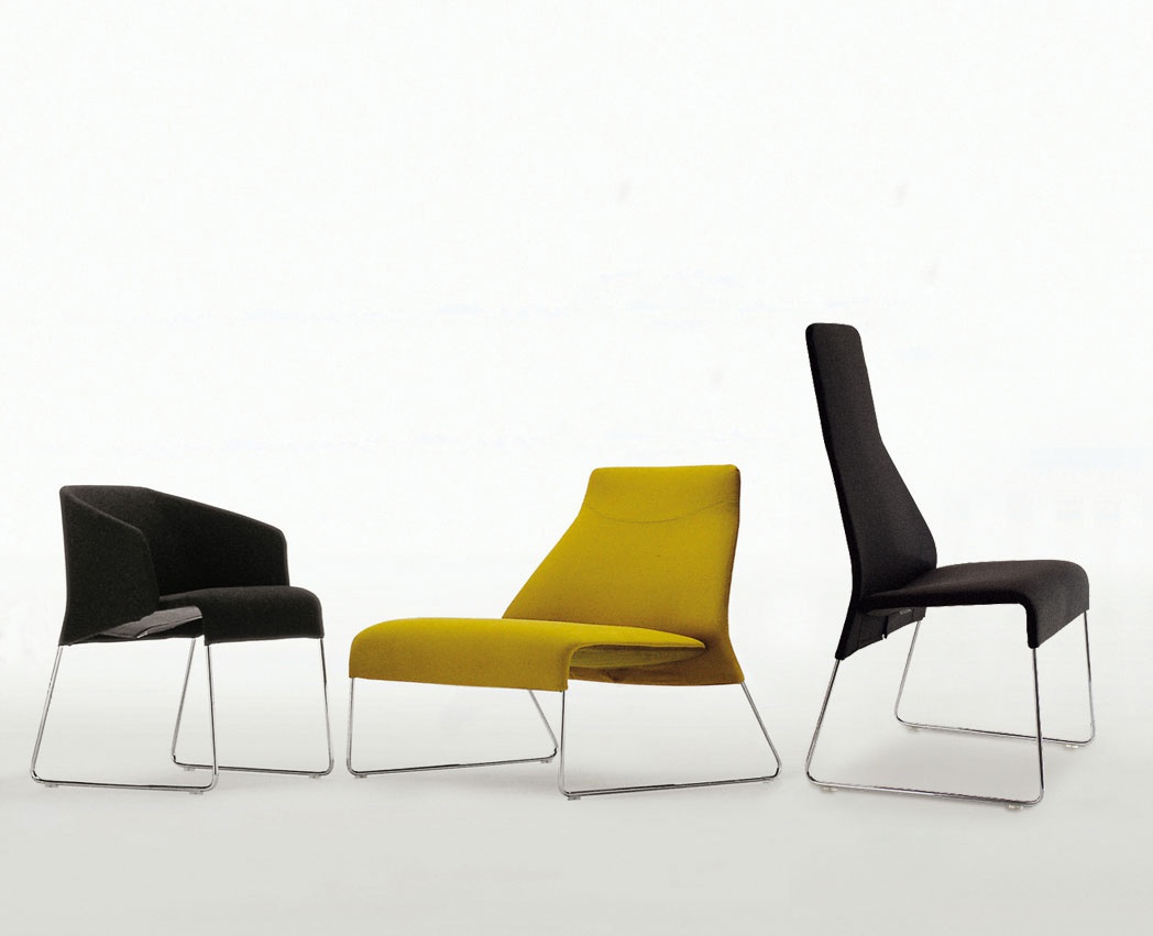 Lazy chair from the Italian manufacturer B&B Italia. The base is made of chromed steel, upholstered in leather or textiles from a range of companies. The model with armrests. A perfect choice for a dining room in a modern style. Colours in stock.