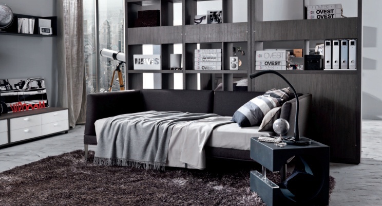 Headsets for children from the Italian manufacturer, Di Liddo & Perego. Set includes bed, Cabinet and plenty of shelving. The furniture is made of solid wood. Finishing varnish from the company portfolio. Colors - black and grey.