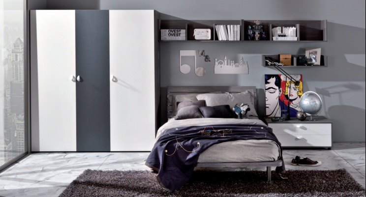 Headsets for children from the Italian manufacturer, Di Liddo & Perego. Set includes bed, bedside Cabinet and wardrobe. The furniture is made of solid wood. Finishing varnish from the company portfolio. The model is made in modern style. Colors - white and black.