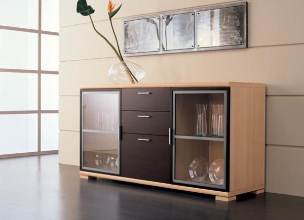 A chest of drawers from Italian manufacturer Santarossa. The model includes three drawers of different depths and closed shelves. Material - solid wood. Finish offered a choice from the collection of the company. Sash glass. The metal fittings. Made a chest of drawers in a modern style.