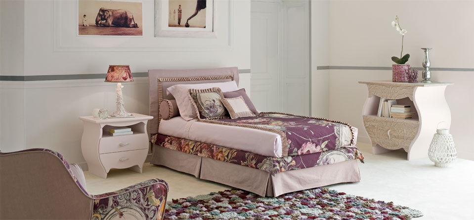 Headsets for bedrooms from Italian manufacturer Halley, a collection of iBoy. Set is made in glamorous style. Bed with upholstered headboard, frame covered by fabric. Furniture and textile accessories made in the same style. Coating - high-gloss lacquer and eco-friendly water-based paints. Colours in stock.