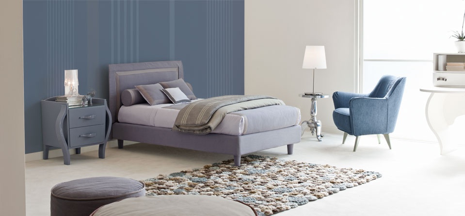 Double bed from Italian manufacturer Halley, a collection of iBoy. Frame and headboard in fabric. Accessories made in the same style. Color in stock.