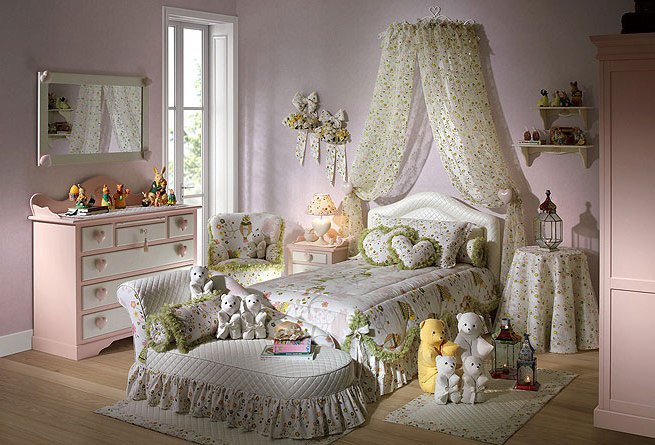 Headsets for children from the Italian manufacturer Halley, collection Junior. The material is solid wood and textile. Furniture richly decorated with carvings. The main decorative material present in the collection – textiles. Design complete - hangings, stitch-Capito, fringe. Set comes complete with textile accessories (bedspread, decorative pillows, curtains), made in the same style. Colours in stock.