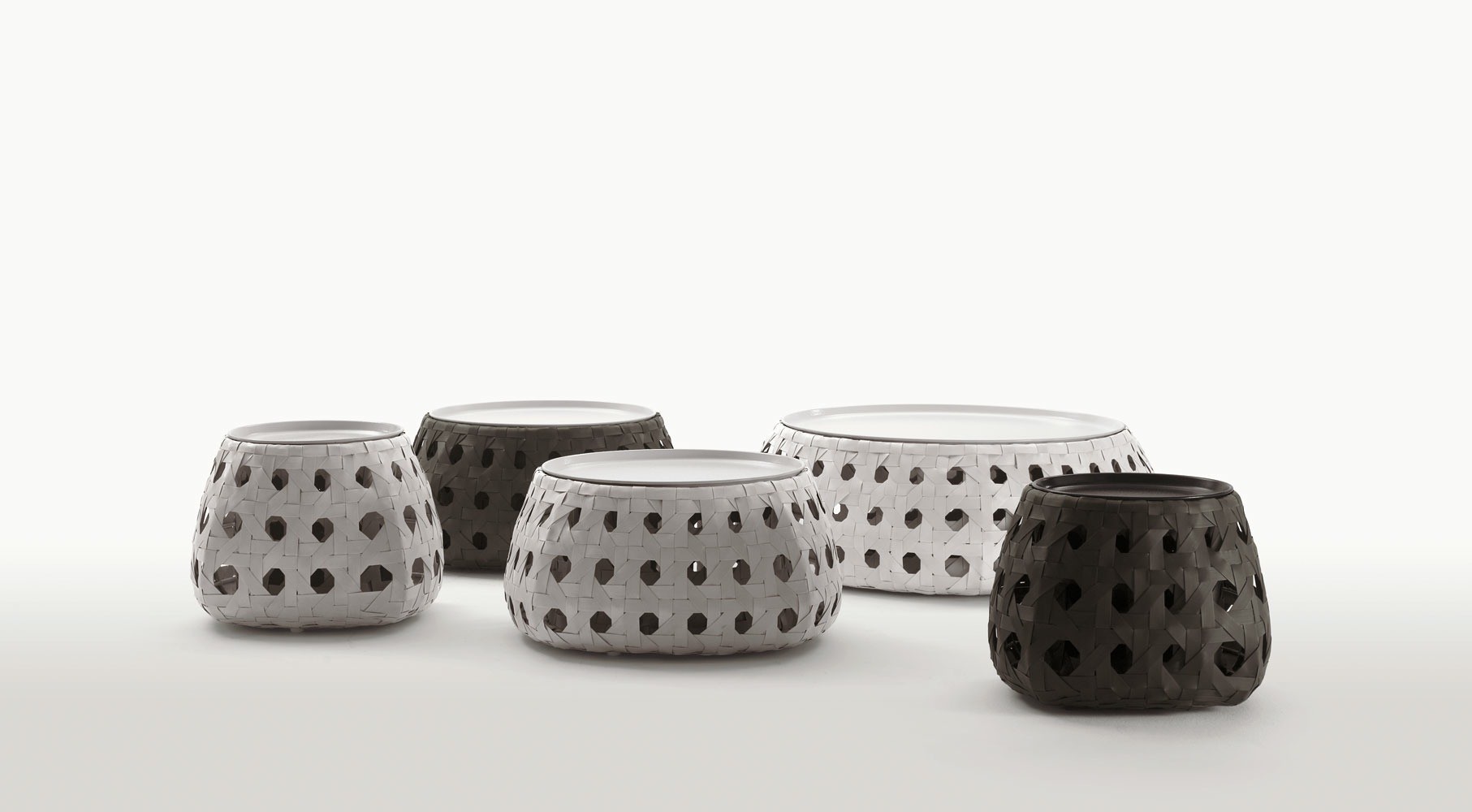 Coffee table, aluminium frame made of polyethylene tapes Canasta, B&B Italia