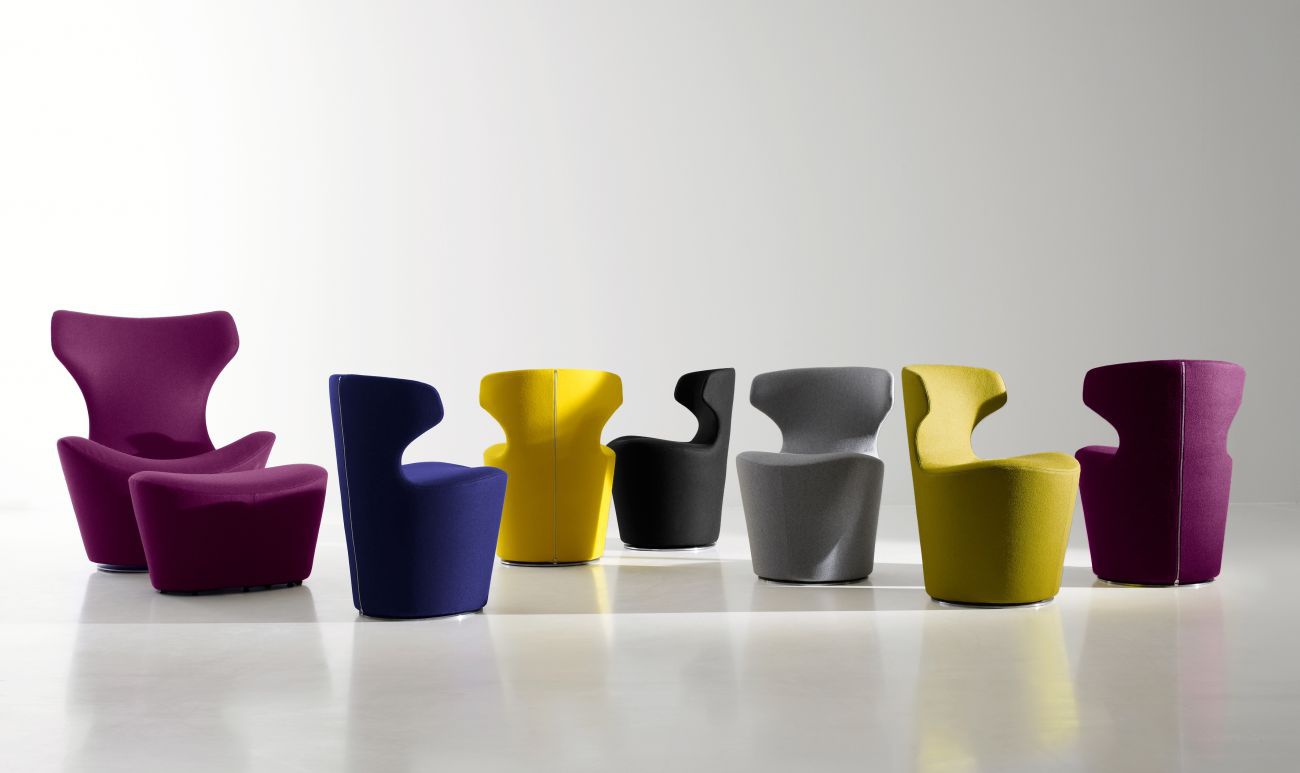 The Piccola Papilio chair from the Italian manufacturer B&B Italia. Upholstery - leather or textiles from a range of companies. Model with a high back. The perfect choice for a living room design. The choice of color in stock.