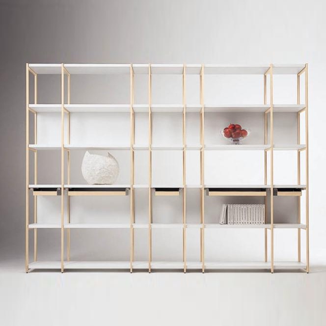 Rack Solaio from the Italian manufacturer Horm. The frame is beech, the shelves are MDF with a finish. This model is made in a modern style. Perfect in the living room. Colours in stock.