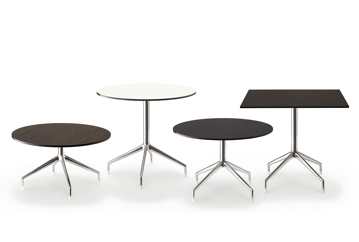Sina table from the Italian manufacturer B&B Italia. The frame is made from aluminium, the tabletop is plastic. Model round/square shape. A great choice for modern interiors. Colours in stock.