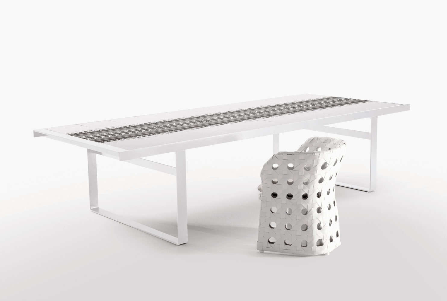 Canasta dining table from Italian manufacturer B&B Italia. The frame is made of steel, top ceramic. Model rectangular shape for garden or terrace. Colours in stock.