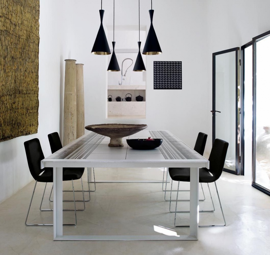 Dining table on steel frame with top in ceramic tiles Canasta B&B Italia