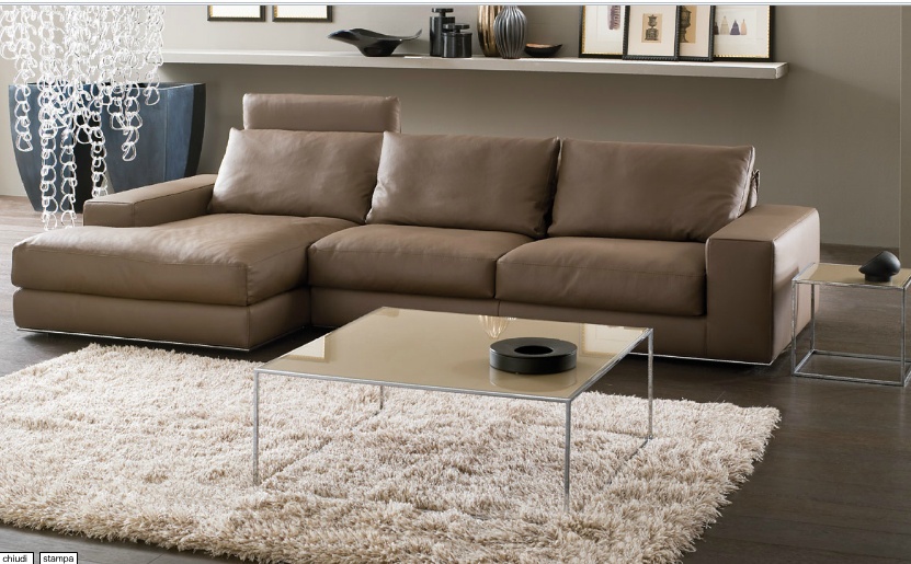 Corner sofa "Blow up", from the Italian manufacturer Gurian. The frame is made from solid wood. Upholstered in leather from the company portfolio. The legs are made of metal. Colors - brown. Back transformed. The model will perfectly complement the modern interiors.