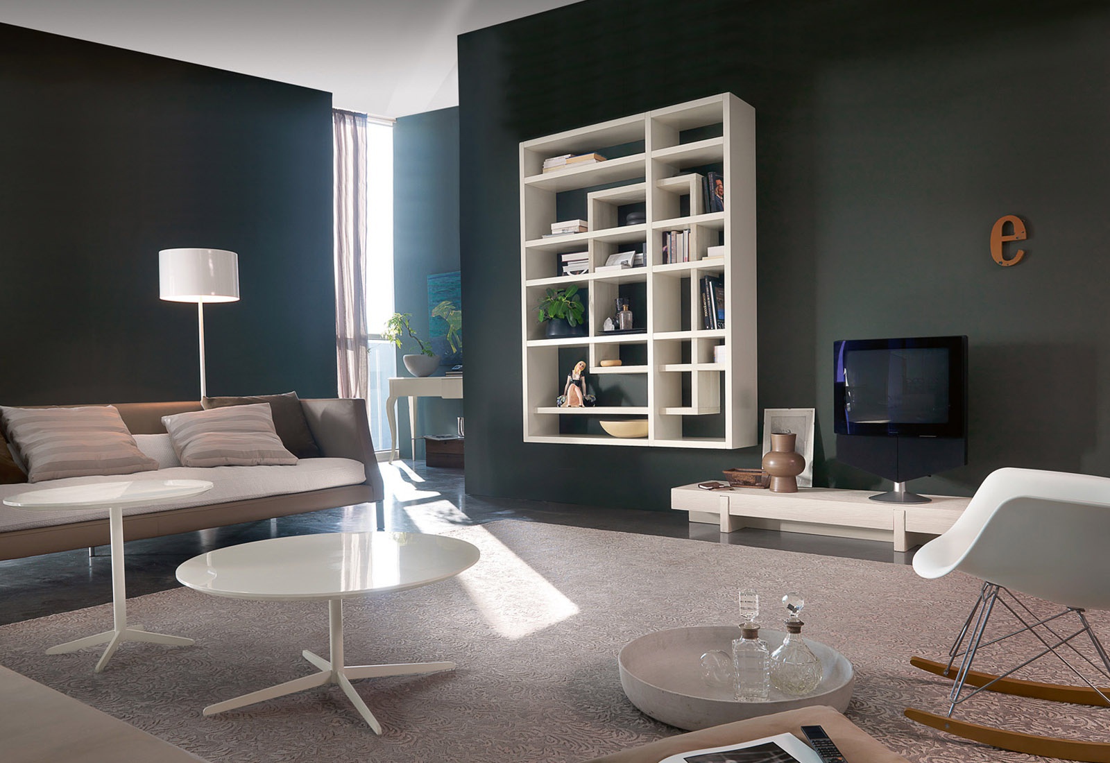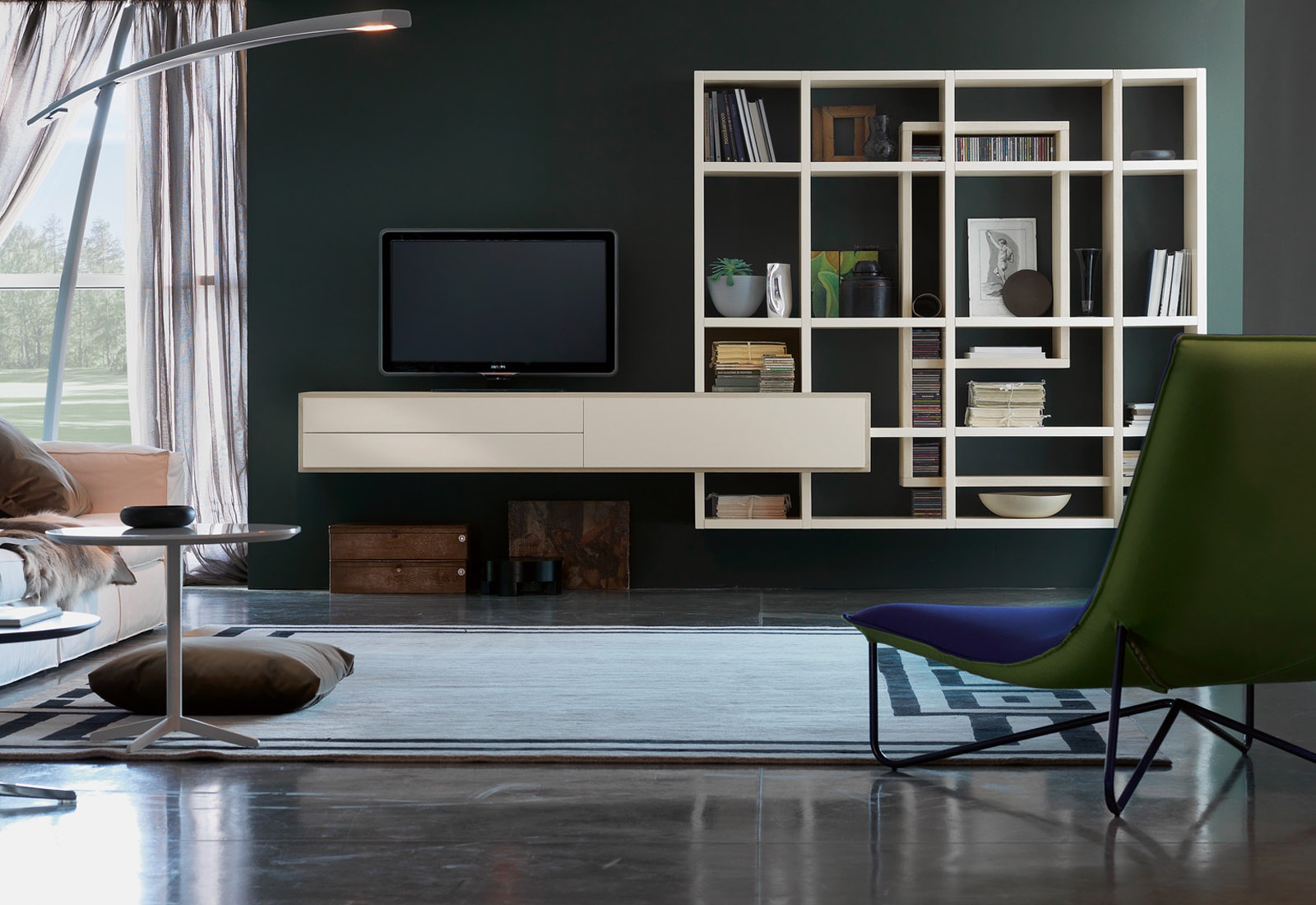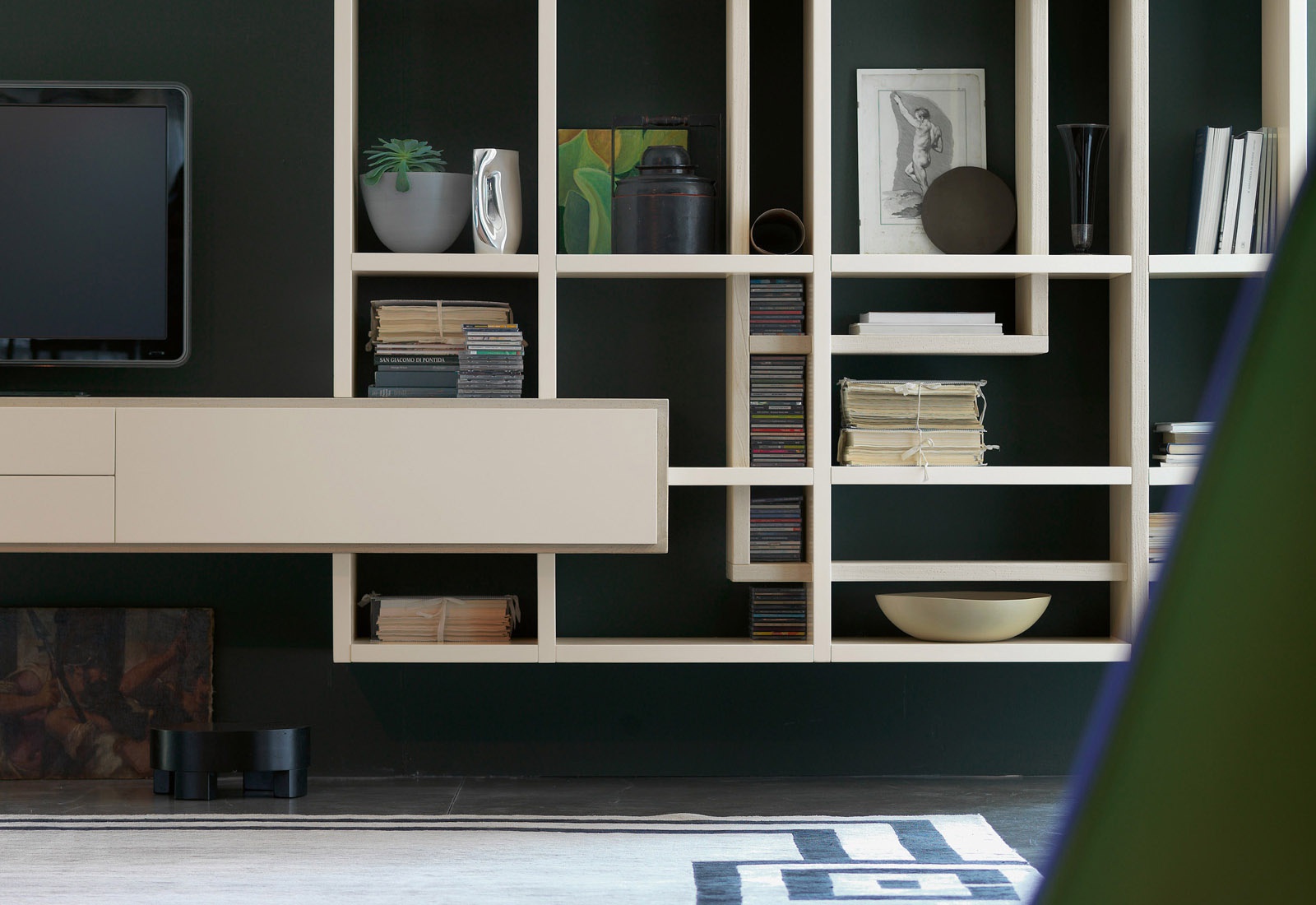 Modular storage system for books and TV from the Italian manufacturer Marchetti. The frame is made of wood. Finishes in stock.