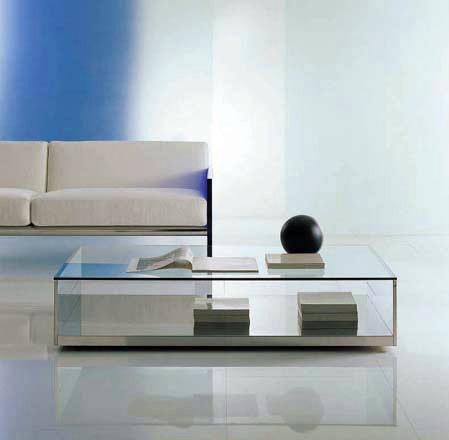 Coffee table with frame in polished stainless steel, side panels made of wood and top made of glass Litt, Acerbis International