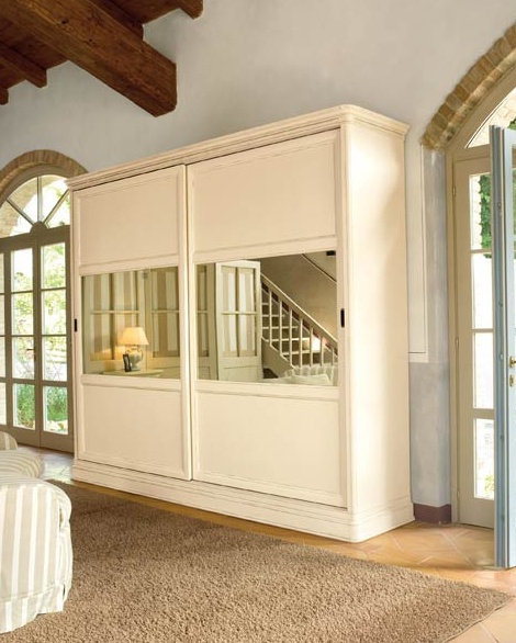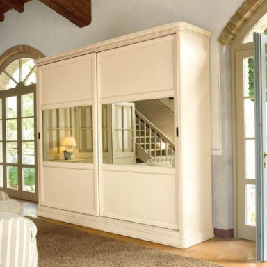 Wardrobe from the Italian manufacturer Tonin casa. The frame is made from solid wood. The surface is covered with a glossy varnish. Colors to choose from a range of firms. Handles are metal. Sash with decorative glass inserts. The model is made in classic style.