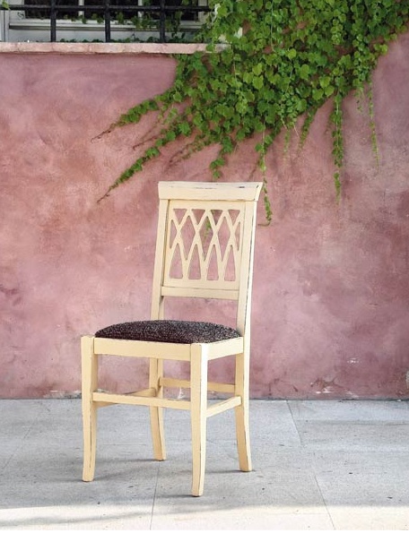 A chair from the Italian manufacturer Tonin casa. The model is made in classic style. Legs and frame made of solid wood. The surface is covered with lacquer from the collection company. Seat upholstered in fabric. The originality of the design gives rigid backrest decorated with sculpted elements.