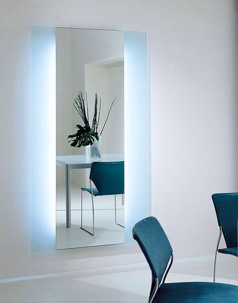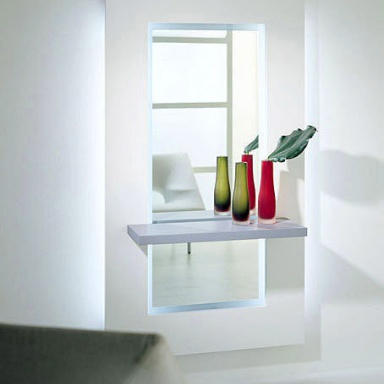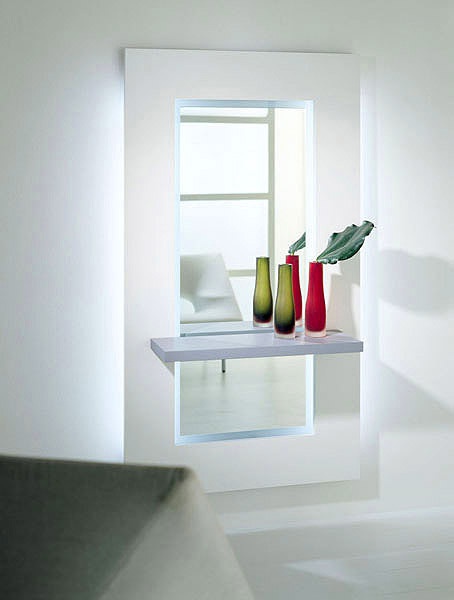 Backlit mirror with frame made of wood or glass shelf from DSP Mirrors, Acerbis International