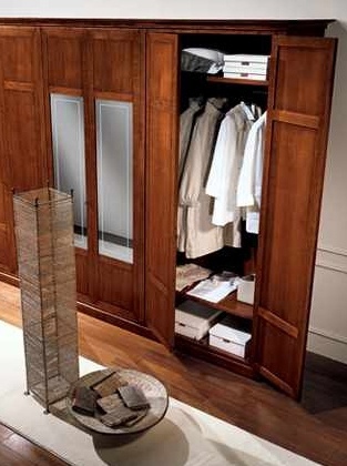 Damier wardrobe from Italian manufacturer of Bamax. The frame is made from solid basswood. Sash - glass. Model with space for storage of clothes and shoes. A perfect choice for bedrooms in classic style. Product color natural wood.