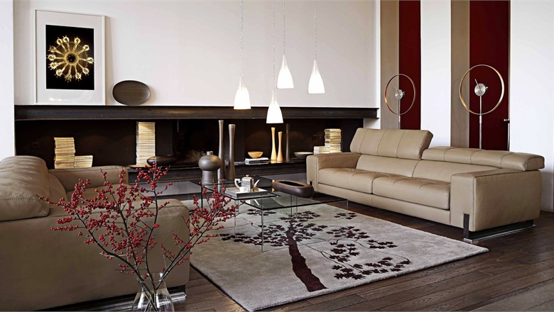 Double sofa Dialogue from the French manufacturer Roche Bobois. The model is made in modern style. Legs made from metal. The frame is completely hidden. Upholstery leather from the company portfolio. Filler - foam and feather. Elasticity provide the seat with elastic straps. The backrest is adjustable in height.
