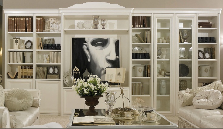 The bookcase from the Italian manufacturer Giusti Portos. The frame is made from solid wood. Doors - glass. Color scheme - white. Finish - wood veneer and lacquer. The model is made in classic style.