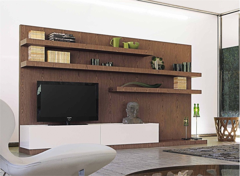 Modular system from French manufacturer Roche Bobois. The model includes a number of open shelves of different lengths and Cabinet with two lockers. The frame is made from solid wood. Finish offered with veneer and glossy lacquer in white. The modular system is made in a modern style.
