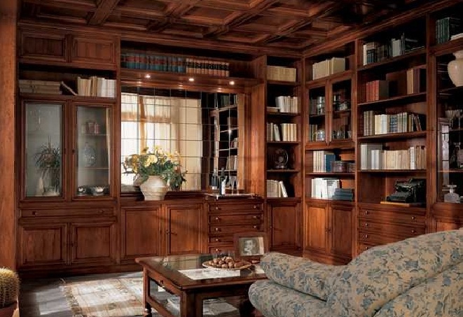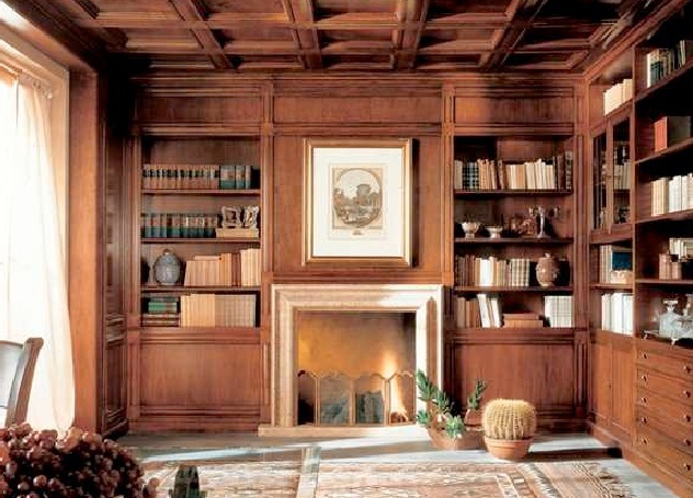 Galileo modular system from Italian manufacturer of Bamax. The frame is made of solid walnut/cherry. Wall for books. The module with drawers and open sections for storage. A chic choice for interior in classic style. Product color natural wood.