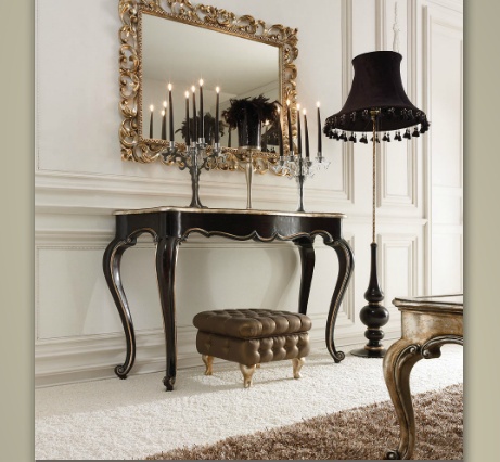 The console, from the Italian manufacturer Giusti Portos. The frame is made of wood. Finish lacquer and wood veneer. The legs are made in the form of Cabriole. Colors - black and gold. The model is made in art Deco style.