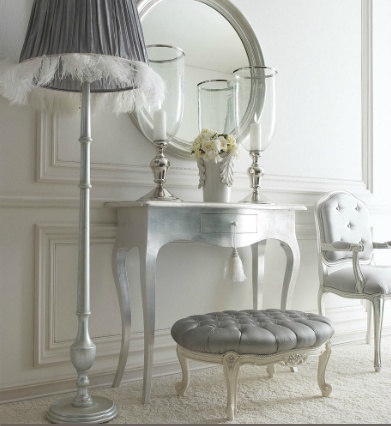 The console, from the Italian manufacturer Giusti Portos. The frame is made of wood. Finish lacquer and wood veneer. Console with drawer made. Colors - silver. The model is made in classic style.