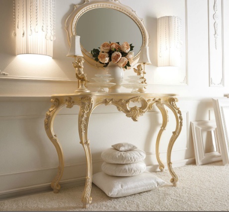The console, from the Italian manufacturer Giusti Portos. The frame is made of wood. Finish lacquer and wood veneer. The legs are made in the form of Cabriole and decorated with carvings. Colors - milk. The model is made in classic style.
