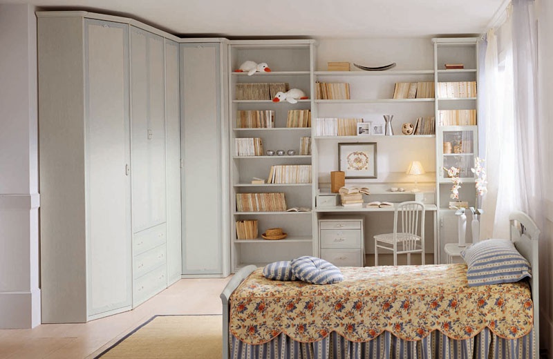 Set for children's C24 from the Italian producer Julia Arredamenti. Model with corner wardrobe, shelves, Desk, chair and single bed. Frames made of wood. Accessories metal. Finish the catalog of the company.
