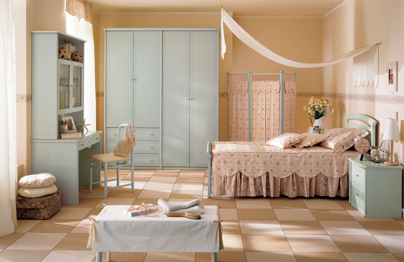 Set for children's C27 from Italian manufacturer Julia Arredamenti. The model is made entirely of wood. Accessories metal. The wardrobe glass. Finish the catalog of the company.