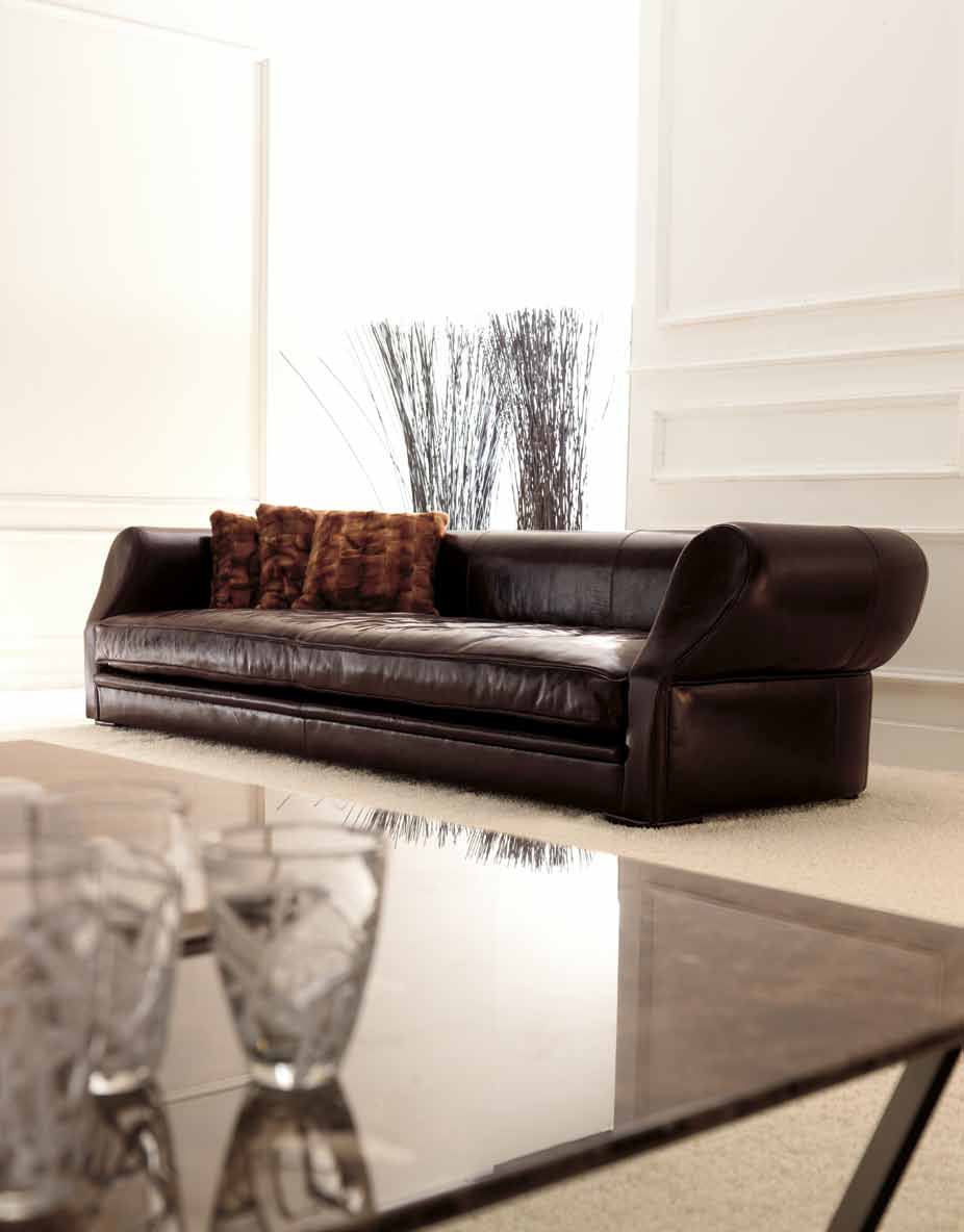 Quadruple Henry sofa from Italian manufacturer Ulivi. The model is made in modern style. The frame is made of beech wood. The upholstery leather collection company. Filler - foam and feather. In addition offered are decorative pillows of different sizes.