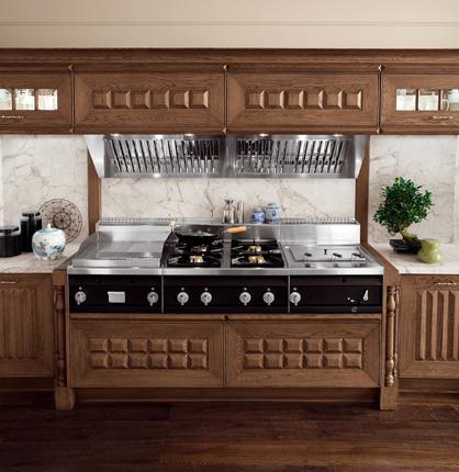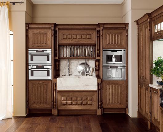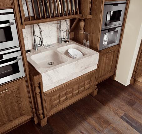 Set for the kitchen Rovere Tabacco from the Italian manufacturer of Bamax. The model is made in country style. The frame is made from solid wood. Finish the catalog of the company. The working surface is covered with marble. In addition, it is proposed a dining table of similar design.