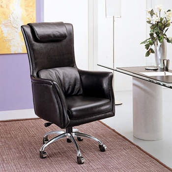 Formosa metal chair from the Italian manufacturer Origgi Salotti. The base is made of metal, filler - foam, upholstery - leather. The rotating model, on wheels with high back. The chair is equipped with mechanism for adjusting the seat height. An excellent choice for Cabinet in modern style. Product color black.
