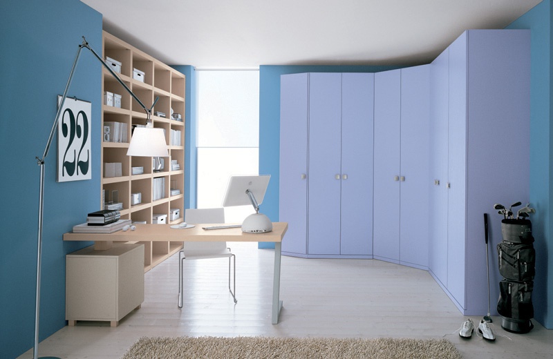 Children's set from the Italian manufacturer Julia Arredamenti. The frame is made of particle Board and veneer wood. Product color blue. The model is designed for teen room in a modern style.
