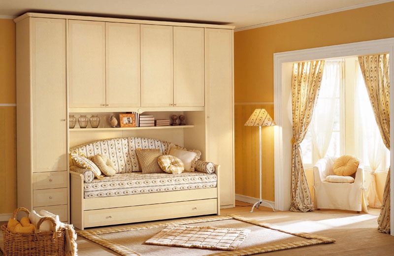 Set for children's C31 from the Italian producer Julia Arredamenti. Presents set children's room with built-in sofa. The frame is made of wood. Accessories metal. The surface is covered with varnish. Upholstery textile.
