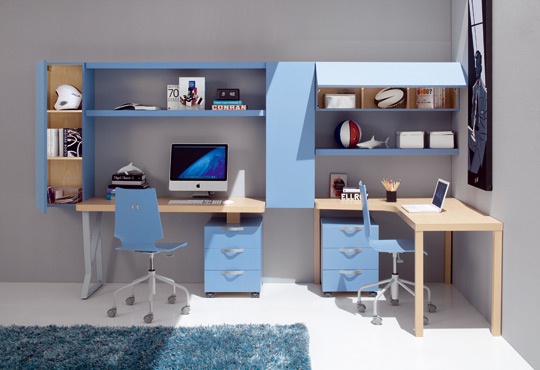 Children's set C41 from the Italian producer Julia Arredamenti. The frame is made of wood. Furniture and chair legs made of metal. The varnish finish offered. Color - blue and grey.