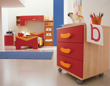 Children's set from the Italian manufacturer Julia Arredamenti. The headset frame is made of veneer wood. The perfect solution for modern teen rooms. Headset color blue with red.