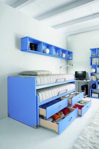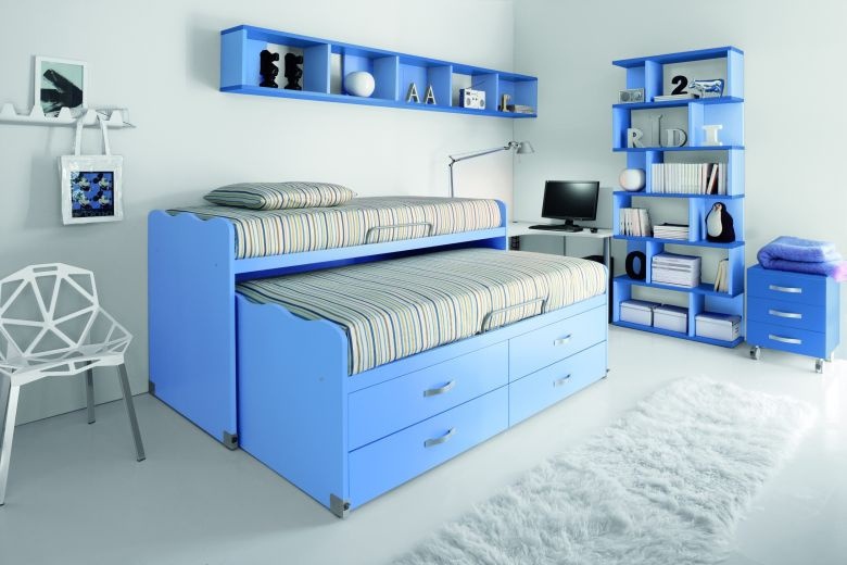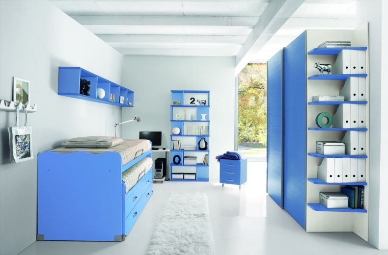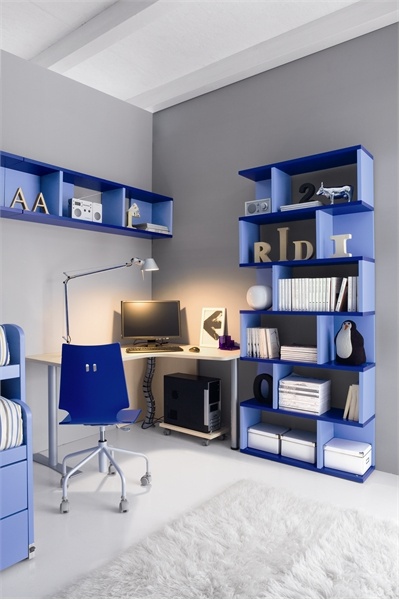 Set for children's Smail T17 from Italian producer Julia Arredamenti. The headset frame is made of veneer wood. Accessories metal. Offered lacquer finish white blue colors. The perfect solution for modern teen rooms.