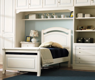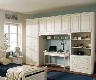 Set for baby Aurora from the Italian manufacturer Benedetti. Set includes single bed, bedside tables and modular storage system. The furniture is made of MDF and tamborito. Set in a classic style. The color of products is white.
