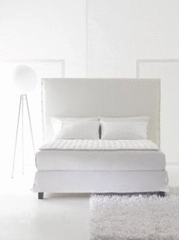 The HIGH WHITE LETTO bed from Italian producer Orizzonti. The legs are made of solid wood/aluminum, removable upholstery - textiles from a range of campaigns. The base is hidden a decorative "skirt". The model is a double high and a cushioned headboard. Great choice for the bedroom in modern style. Product color white.