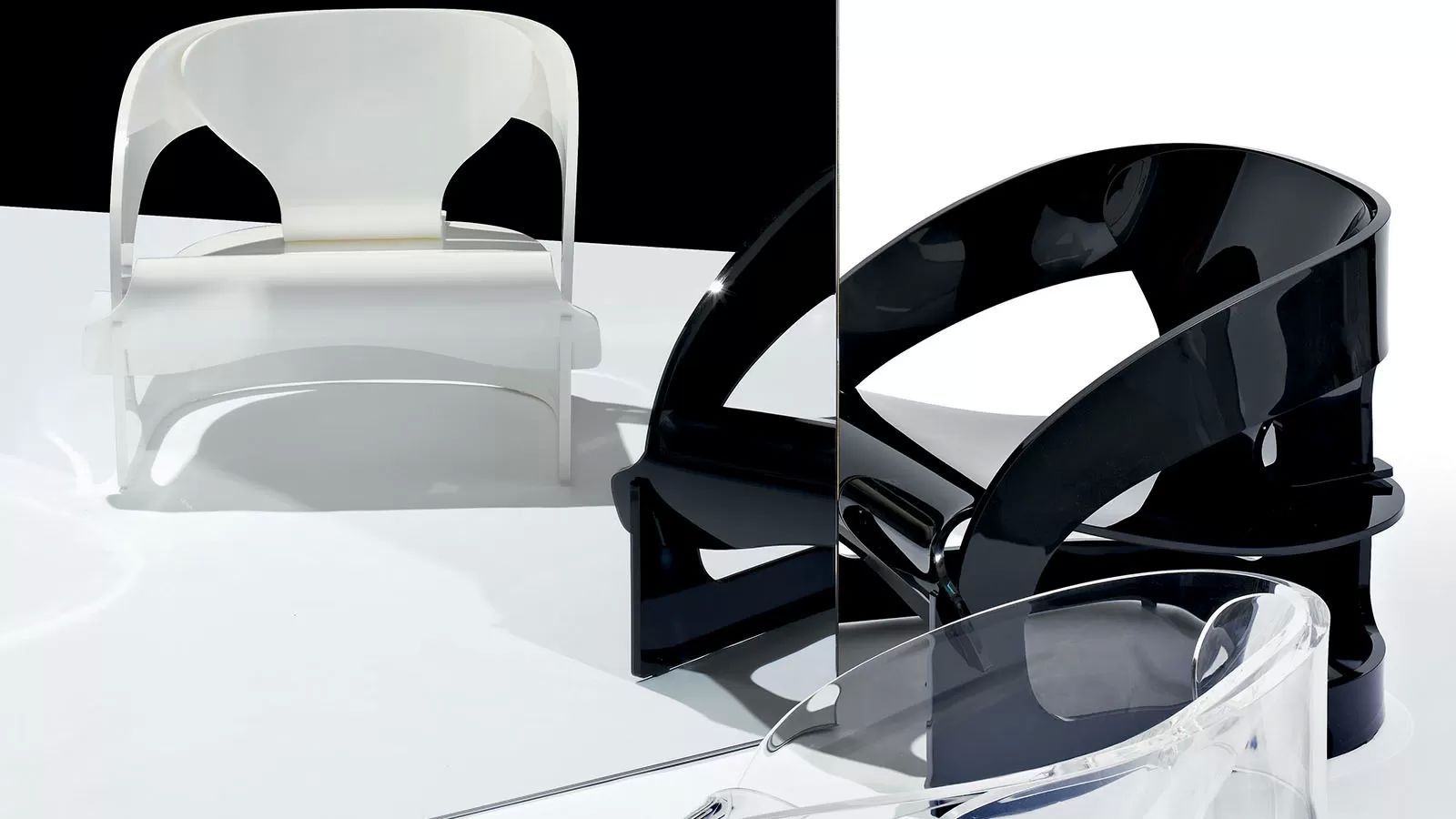 Armchair Poltrona Joe Colombo from the Italian manufacturer Kartell. The frame is made of clear, colorless / black / white thermoplastic material. The model will decorate the interior in a modern style. Colors: transparent, black, white.