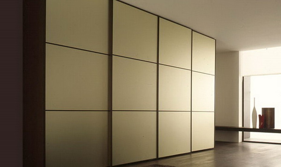 Storage system from the Italian manufacturer Novamobili. Set consists of shelves for storing clothes and shoes are hidden behind sliding doors. The frame is made from solid wood. Colors in beige tone. The perfect solution for modern interior walk-in closet.