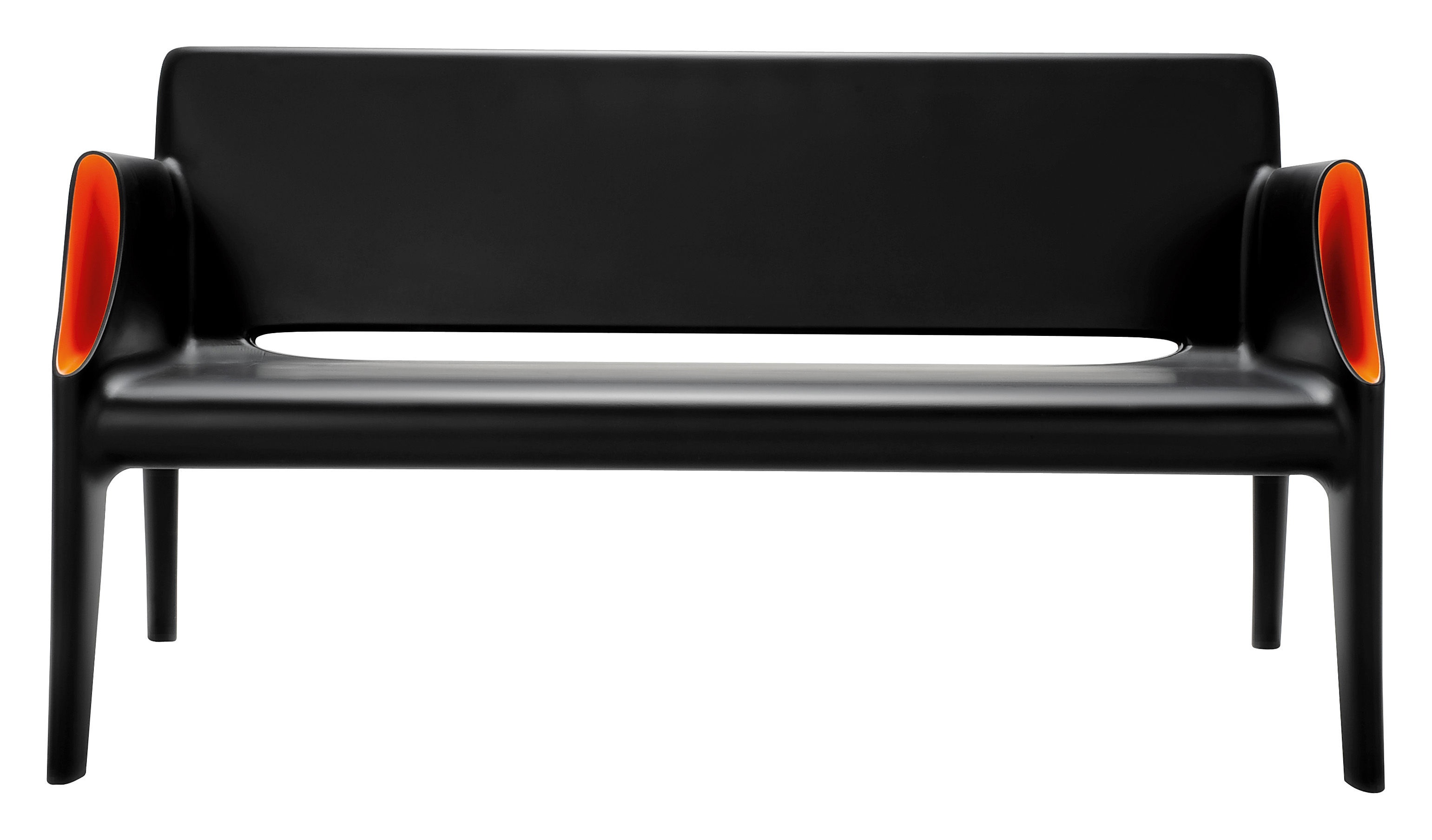 The Magic hole sofa from Italian manufacturer Kartell. The frame is made from plastic. The model with the holes in the armrests, which can be used as pockets for storage of Newspapers and magazines. A great choice for living room in modern style. Colors: white, orange, black, green, grey.