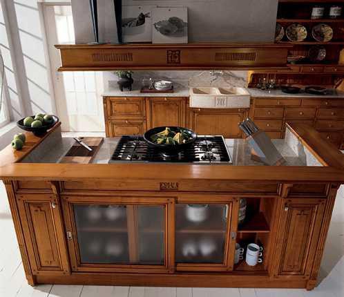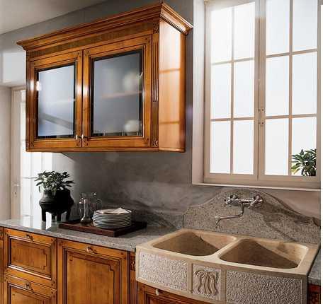Kitchen Fiocco di Seta from the Italian manufacturer of Bamax. The model is made in classic style. The headset base is made of solid wood, doors made of solid cherry. A clear geometry of forms of the facades of the kitchen, even a single line can create the stylish interior of your kitchen.