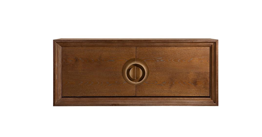 Panama Complanare a chest of drawers from Italian manufacturer EGO. Frame and doors made from solid oak. Model two door, with solid metal handles. Inside are two glass shelves. The dresser is made in art Deco style.