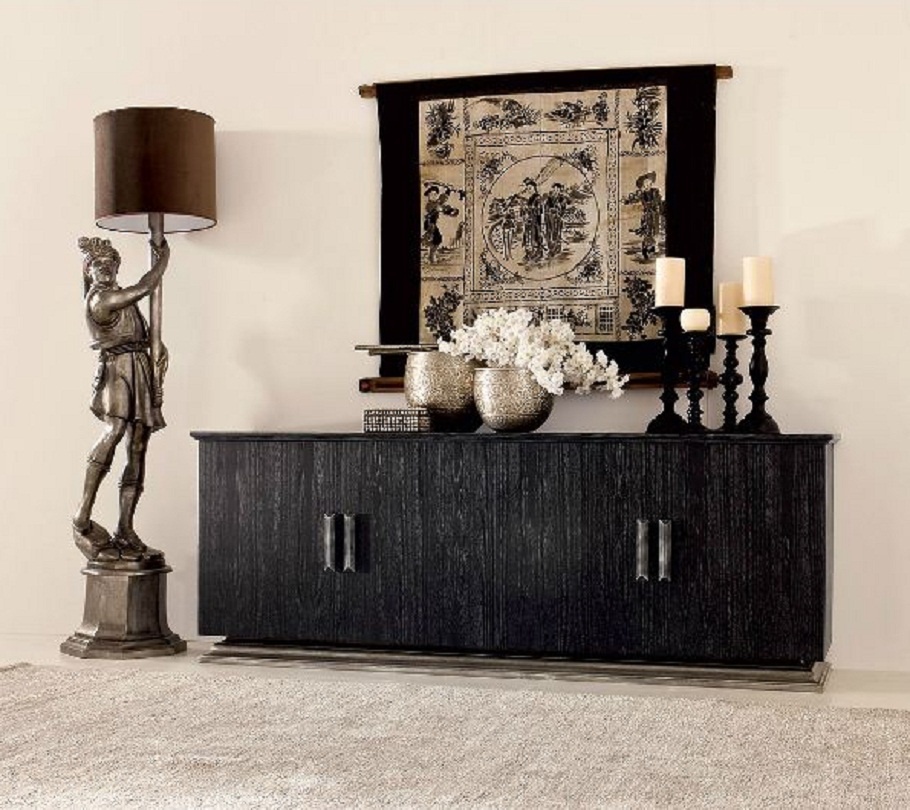 Dresser Rudy from the Italian manufacturer EGO. The frame is made of solid oak. Model four door, with glass shelves. Accessories metal. The drawers complement the decorative table top and base. The model is made in art Deco style.