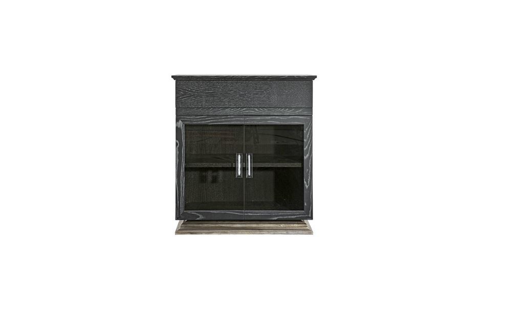 Dresser Rudy Bar from the Italian manufacturer EGO. The frame is made of solid oak. The two-door model, with one wooden shelf. Door handles and glass. The dresser is made in the art Deco style.