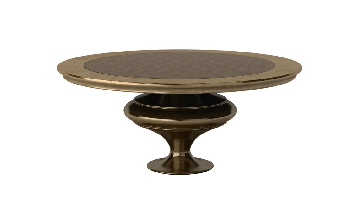 Table Twister from Italian manufacturer EGO. The frame of the table is made of solid oak. Table top, round, wood, Golden color, with a decorative mirror insert. Leg massive, figure. The model is made in art Deco style.